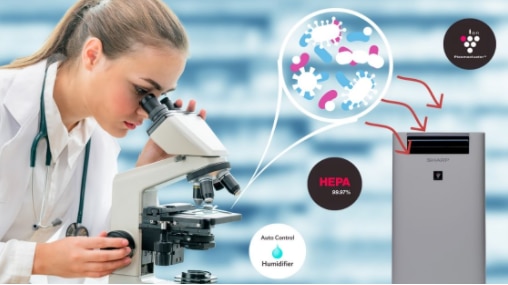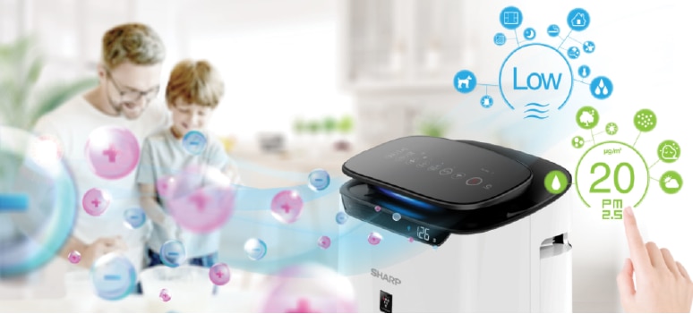 Tehnologia inovativa Plasmacluster, folosita de SHARP in purificatoare, are la baza eliberarea in aer a ionilor (pozitivi si negativi) care curata aerul, inainte de a-l filtra mecanic. Odata descarcati in atmosfera, ionii se lipesc de alergeni, bacterii, spori de mucegai si de virusurile care pastreaza oxigenul in aer si descompun molecule de hidrogen de pe suprafetele lor in moelcule de apa.